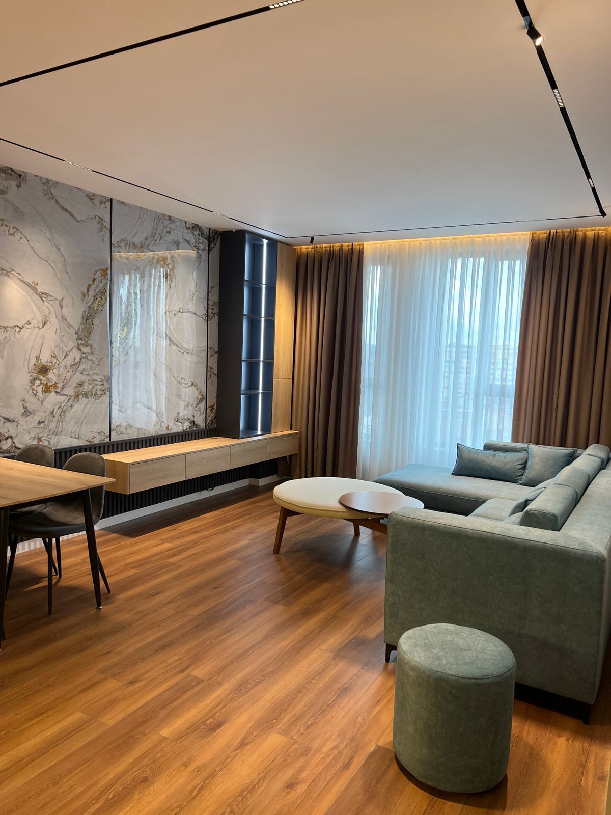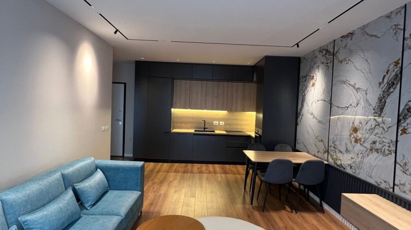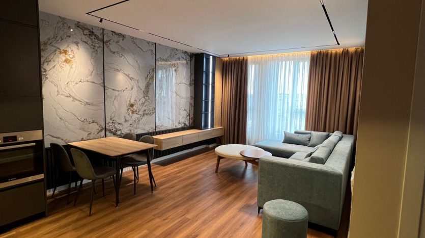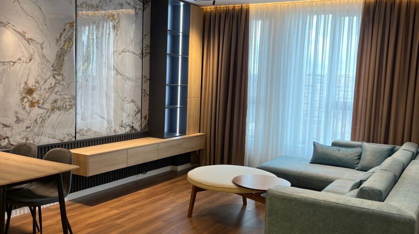 Apartamenti ka një sipërfaqe prej 70 m² dhe ndodhet në katin e 7 të një pallati të mirëadministruar. Organizohet në sallon së bashku me ambientin e gatimit, 1 dhomë gjumi, 1 tualet dhe ballkon. Ambientet janë të bollshme, funksionale dhe me ndriçim të mirë natyral, duke ofruar komoditet për një jetesë të përditshme.