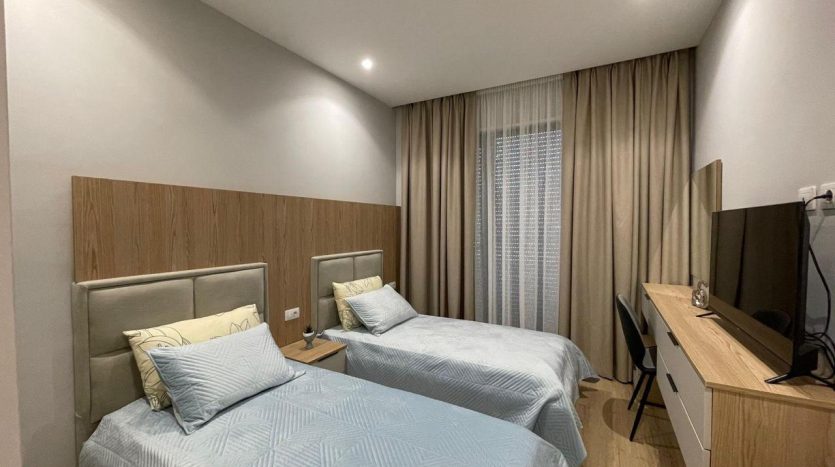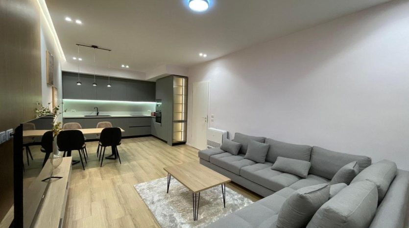 Jepet me qira apartament modern tipologji 2+1+2 , i mobiluar ne kompleksin rezidencial La Crema, prane hotel Radisson dhe Liqenit te Thate. Apartamenti eshte i organizuar nga nje sallon i bollshem me kuzhine te hapur, 2 dhoma gjumi, 2tualete dhe ballkon. Ne cmimn perfshihet post parkimi.